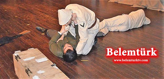 Çanakkale savasında yaşananların konu edildiği tiyatro oyununda, salonu dolduran davetliler duygulu anlar yaşadılar ve göz yaşlarına hakim olamadılar. Gent Fatih Cami Baş Fahri İmamı Hakan Karadağ’da oyun içinde kısa bir rol alarak, hayatını kaybeden bir şehit asker için Kuran-ı Kerim okuyarak gecenin süprizini gerçekleştirdi ve salondakilerdem büyük alkış topladı.
