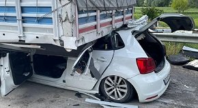 Afyonkarahisar’da tırın dorsesine arkadan çarpan otomobildeki 2 kişi ağır yaralandı.
