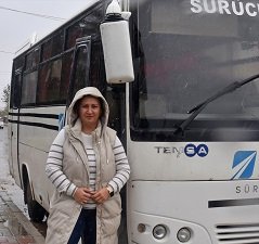 Yıllardır eşiyle servis şoförlüğü yapan Küçükçelebi, büyük araç kullanma tutkusunu otobüsle gideriyor. Kursta kendisine “Şoför Nebahat” deniliyor.
