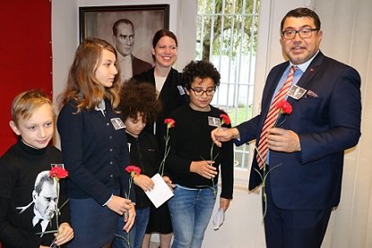 Anvers Başkonsolosluk salonunda organize edilen 10 kasım programı toplu fotoğraf çekimleri ve davetlilere verilen ikramlarla sona erdi.