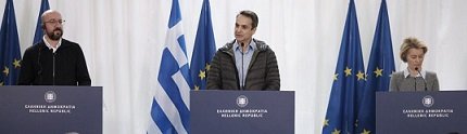 Yunan Başbakan, Avrupa Birliği üst düzey yetkilileri ile bugün öğlen saatlerinde Türk-Yunan sınırında incelemelerde bulundu. Avrupa Konseyi Başkanı Charles Michel, Avrupa Komisyonu Başkanı Ursula von der Laien ve Avrupa Parlamentosu Başkanı David Sasoli ile helikopterle sınır boyunca yaşanan krizi gözlemleyen liderler, daha sonra ortak basın toplantısı düzenledi.