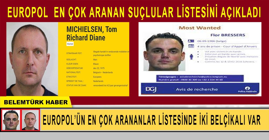Europol’ün en çok aranan suçlular listesinde iki Belçikalı var.