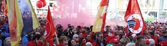 Geçen hafta 200 binden fazla işçi metal ve elektrik endüstrilerindeki fabrikalarda kısa süreli uyarı grevlerine ve protesto eylemlerine katıldı.