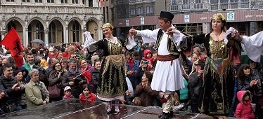 Balkan ve Doğu Avrupa ülkelerinden gelen sanatçı, müzisyen ve yönetmenlerin katıldığı, 19-23 Nisan’da gerçekleştirilen festivalin son gününde kentin tarihi mekanlarından Grand Place’ta kurulan dev platform, halk oyunu ekiplerini ağırladı.