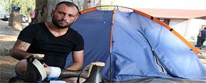Çadırda yaşıyor