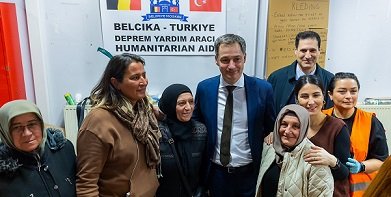 Anvers’in Berchem bölgesindeki yardım toplama merkezine dün gece giden Başbakan de Croo, burada bulunan Türklerle bir araya geldi.
