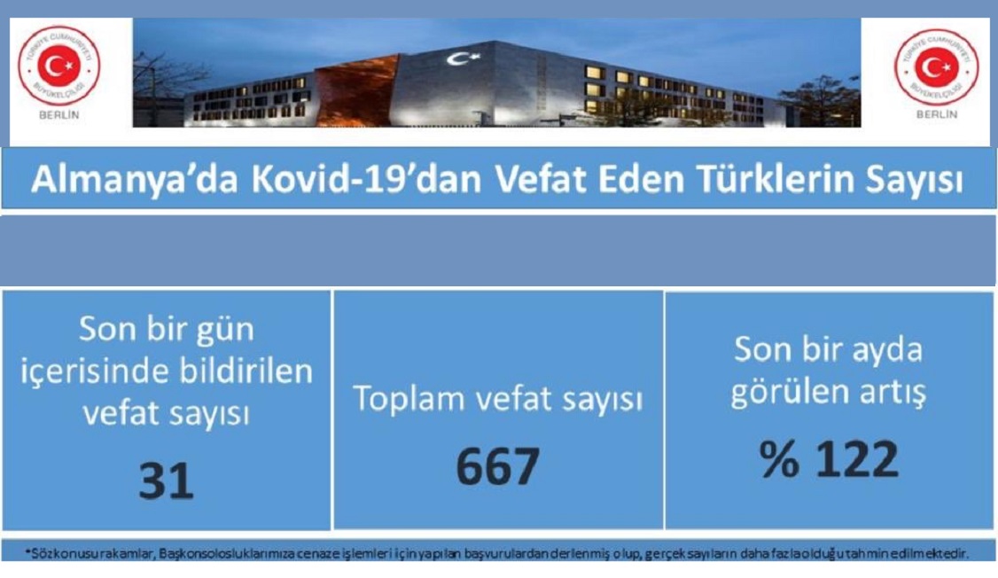Almanya’da “Son 24 saatte KOVID-19’dan 31 Türk vatandaşı hayatını kaybetti”