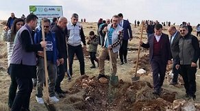 Avrupalı gurbetçilerin bir buçuk milyon lirayı bulan desteğiyle Şanlıurfa kırsalında 4 ayrı bölgedeki taşlık arazilerde 200 bin fidan toprakla buluşacak.