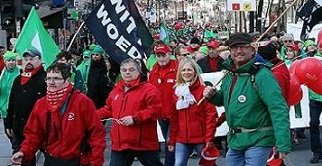 Yaklaşık 12 bin kişinin katıldığı gösteride, hastane, bakım evleri gibi kar amacı gütmeyen kurumların çalışanları için talep edilen iyileştirmelerin uzun zamandır sağlanmaması protesto edildi.