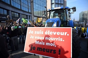 Belçika’daki çeşitli çiftçi birliklerinin çağrısıyla yaklaşık 200 çiftçi, Brüksel’deki AB Komisyonu ve AB Konseyi önündeki Schuman Meydanı’nda bir araya geldi.