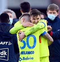 Belçika’da koronavirüs önlemleri kapsamında profesyonel futbolcuların, atılan gol sonrası saha içinde birbirlerine sarılarak gol sevinci yaşamaları yasaklandı.