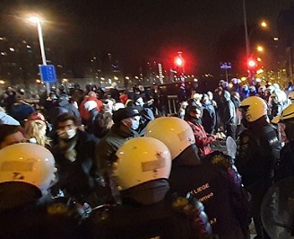 Belemtürk Haber Merkezi – Belçika’da, şu anda yürürlükte olan sokağa çıkma kısıtlamalarını protesto etmek için Cumartesi akşamı Liège’in merkezinde yaklaşık 400 kişi toplanarak gösteri düzenledi.