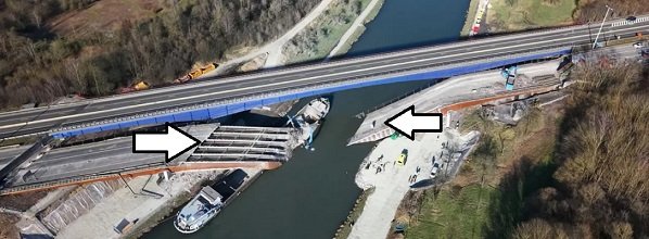 Köprü sökme çalışmaları nedeniyle perşembe sabahından bu yana su kanalı gemi trafiğine “ikinci bir duyuruya kadar kapatılmıştı.