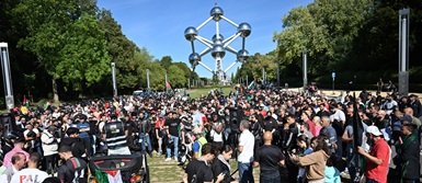 Belçika’nın başkenti Brüksel’in simgesi Atomium’da buluşan yüzlerce motosiklet sürücüsü kent içerisinde konvoy oluşturarak Filistin’e destek gösterisi yaptı.