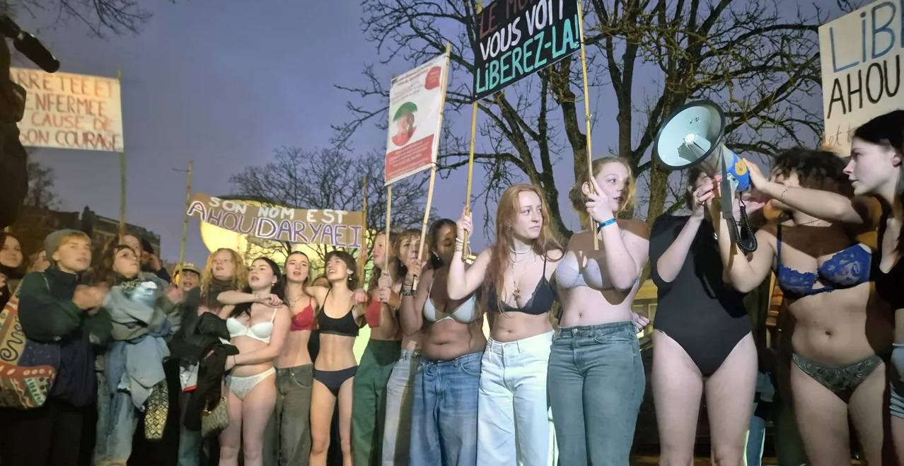 Brüksel’deki İran büyükelçiliği önünde çıplak protesto eylemi