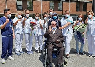 Genk Zol Hastanesinde kaldığı 88 günün 60 gününü hastanenin yoğun bakım ünitesinde geçiren 6 çocuk babası İmdat Kılıç, dün öğlen saat 14:00’de hastane personeli tarafından alkışlarla uğurlanırken, 77 yaşındaki Kılıç, hastane çıkışında çocukları ve torunları tarafından çiçeklerle ve sevinç çığlıkları ile karşılandı.