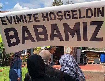 İmdat Kılıç, hastaneden ayrılarak 88 gün sonra geldiği evinde “evimize hoş geldin babamız” yazılı pankart ile karşılandı.