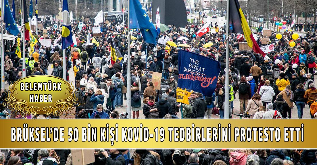 Brüksel’de 50 bin kişi Kovid-19 tedbirlerini protesto etti
