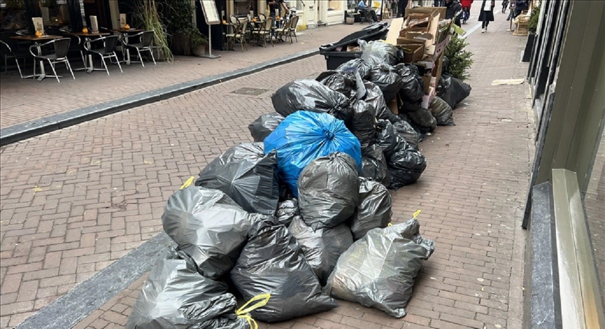Hollanda’da temizlik işçilerinin grevi nedeniyle sokaklar çöp yığınlarıyla doldu
