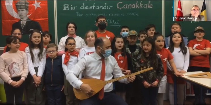 Brüksel Başkonsolosu Umut Deniz ve Anvers Başkonsolosu Batu Kesmen’in de katıldığı etkinlikte çocuklar İstiklal Marşı ile ilgili şiirler okudu.