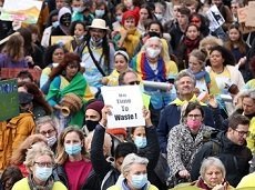 Trafiğe kapatılan caddelerde yürüyen eylemciler “Yeşil düşünün”, “Çözümün parçası olun, kirliliğin değil”, “Toprak anamıza saygı”, “Bugün oy kullanamayan gelecek 10 jenerasyonu düşünün”, “Fosil yakıtlardan özgürleşin”, “Değişim istiyoruz ama iklimde değil” ve “Zamanımız yok” yazılı Fransızca, Flemenkçe ve İngilizce pankartlar taşıdı.