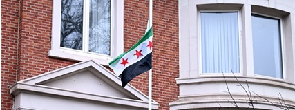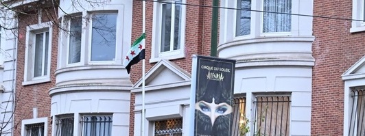Belemturk Haber Merkezi – Suriye’nin Brüksel Büyükelçiliğinde, çöken Baas rejimine ait bayrağın yerine “Suriye devrimi bayrağı” asıldı.