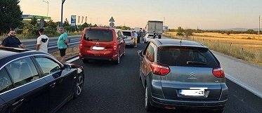 Bulgaristan’ın Maritsa Otoyolu’nda Türkiye istikametinde seyreden bir gurbetçi aracı, bu sabah saat 06:30 sularında, yoldan çıkarak yol tabelasına çarptı.