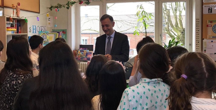 Okul ziyaretine yaklaşık iki saat zaman ayıran Gümrükçü, daha sonra buradan ayrılarak görev yeri olan Brüksel’e geri döndü.