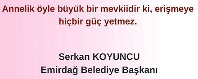 Sevgi ve umut dolu yüzlerinde oluşturacağımız tatlı bir tebessümün dünyalara değeceğini unutmayalım. Bu vesileyle bizi dünyaya getiren, hayatımız boyunca koruyup kollayan, üzerimizdeki haklarını ödeyemeyeceğimiz vefa çınarı annelerimizin Anneler Günü’nü kutluyorum. Bütün annelere en derin saygılarımı sunuyorum.