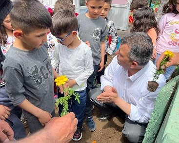 Emirdağ Belediye Başkanı Serkan Koyuncu Emirdağ Merkez Anaokulu’nu ziyaret ederek öğrencilerle biraraya geldi. Öğrencilerle yakından ilgilen Koyuncu, onlarla birlikte okul bahçesine çiçekler dikip can suyunu verdi.