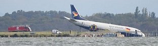 Fransa’nın güneyindeki Montpellier kentinde kargo yüklü uçak, iniş sırasında pistten çıkarak yakındaki gölete düştü.