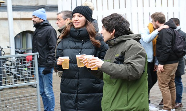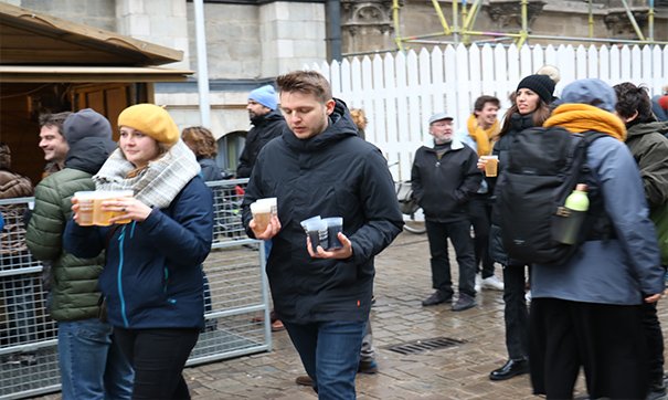 Sıcak şarap, bira, meyve suyu ve çorba alabilmek için uzun kuyruklar oluşturan vatandaşların yanı sıra, bazı vatandaşların ise kuyrukta beklememek için kendi içkilerini getirdikleri görüldü.