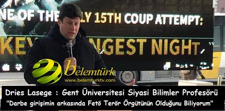 Programa konuşmacı olarak katılan Gent Üniversitesi siyaset bölümü profesörü Dries LESAGE, yaptığı konuşmasında “ Kesinlikle 15 temmuz darbe girişiminin ardında Fetö terör örgütünün olduğunu biliyor ve inanıyorum. Belçika ve batı medyasının olaya taraflı ve tek yönlü duruşunu anlamak mümkün değil” sözlerine yer verdi.
