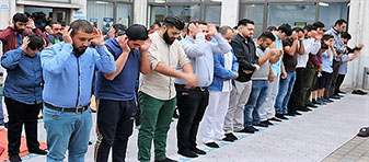Bayram namazı için Yavuz Sultan Selim Camisin’e sığmayan müslümanlar, cami avlusunda ve cami lokalinde kendilerine zor yer buldular. Birlik ve beraberlik mesajlarının verildiği Ramazan Bayramı namazı, saat 06:30’da Cami imamı Abdurrahman Bakır’ın Bayram namazının kılınışını anlatmasıyla başladı.