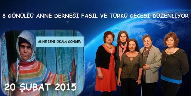 8 GÖNÜLLÜ ANNE DERNEĞİ FASIL VE TÜRKÜ GECESİ DÜZENLİYOR