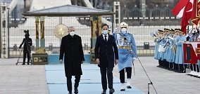 Erdoğan ve Rutte’nin tören alanındaki yerlerini almalarının ardından, 21 pare top atışı eşliğinde İstiklal Marşı ile Hollanda Milli Marşı çalındı. Rutte, Muhafız Alayı Tören Kıtası’nı selamladı.