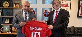 Türkiye Futbol Federasyonu’nda gerçekleşen ziyarette TFF’nin yeni Başkanı Mehmet Büyükekşi, Belçika Türk Spor ve Kültür Federasyonu Başkanı Nedim Koçaslan’ı kabul etti.