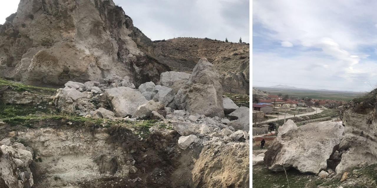 Afyonkarahisar’da Bolvadin fayının başladığı dağdan kopan kaya parçaları tedirgin ediyor