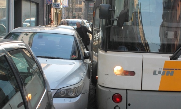 GENT SLEEPSTRAAT’DA YANLIŞ PARK EDEN ARAÇLAR, TRAMVAY GEÇİŞLERİNDE SORUN YARATIYOR