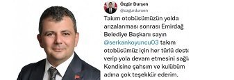 Sporcuların yolda kalmasına kayıtsız kalmayan Emirdağ Belediye Başkanı Serkan Koyuncu arızalan otobüsün tamiri için her türlü desteği vererek genç oyuncuların sorunsuz bir şekilde Ankara’ya ulaşmalarını sağladı.