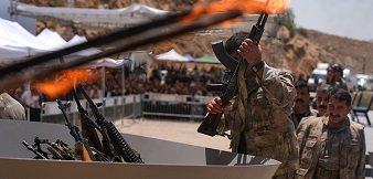 Terör örgütü PKK’dan bir grup, Irak’ın Süleymaniye kentinde silahlarını imha etti.
