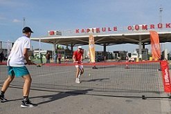Edirne Gençlik ve Spor Müdürlüğü organizasyonunda Bulgaristan’a açılan Kapıkule Sınır Kapısı önündeki bir alana iki file gerildi. Oluşturulan alanda Bulgaristan’dan gelen sporcularla Türk sporcular gösteri maçı yaptı.