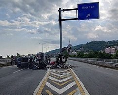 Edinilen bilgiye göre, Yusuf Kiraz (58) yönetimindeki GD PJ 809 Almanya plakalı araç, Karadeniz Sahil Yolu Hayrat viyadüğü girişinde kara yolu yön levhasının direğine çarptı. Kazada, Ayşenur Doğan (22) ile Zeliha Çatan (38) olay yerinde hayatını kaybetti. Sürücü Kiraz ile Eymen (11), Ensar Fuat (7) ve Enver Buğra Çatan (1) yaralandı.