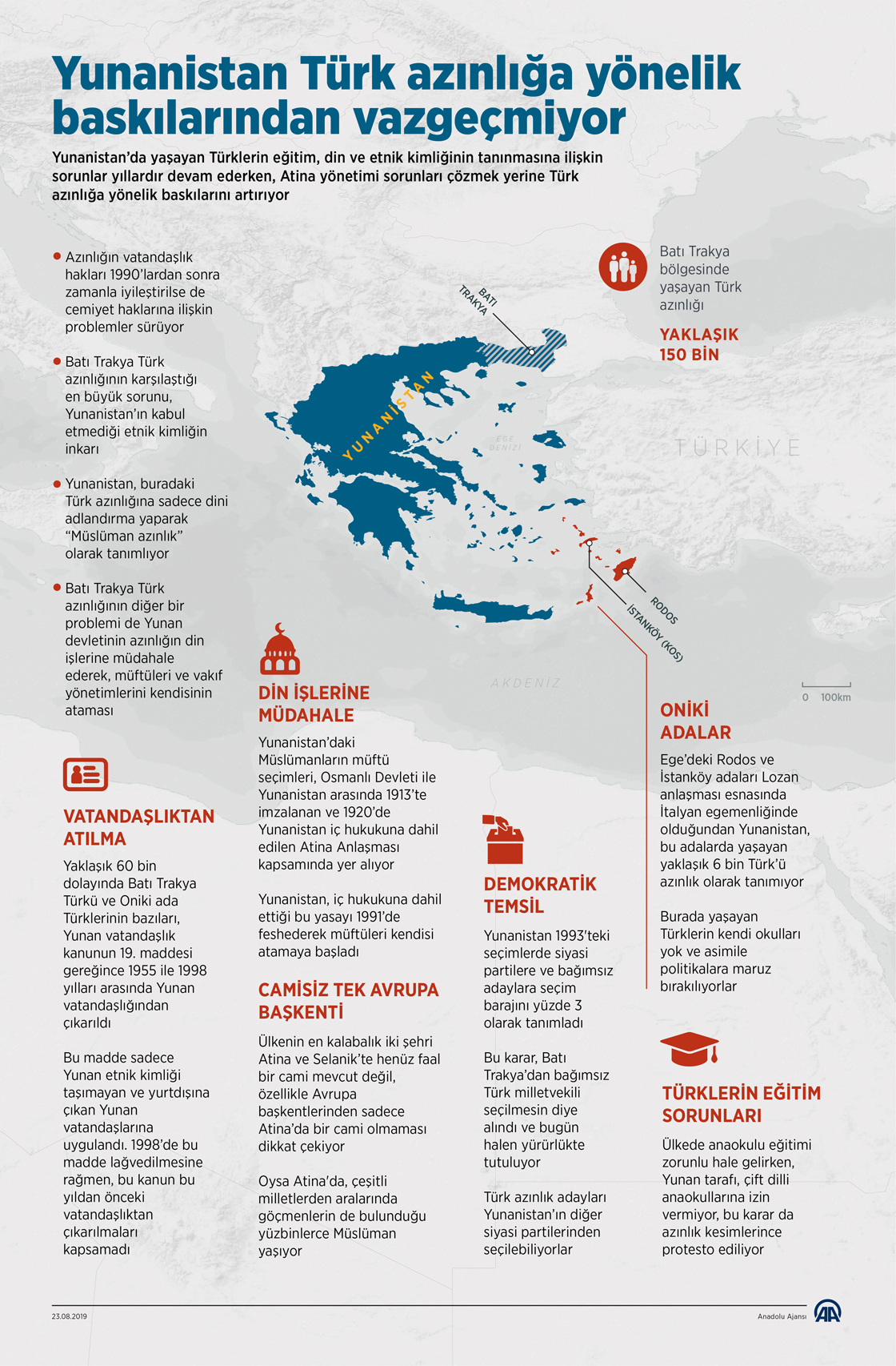 Yunanistan’da yaşayan Türklerin eğitim, din ve etnik kimliğinin tanınmasına ilişkin sorunlar yıllardır devam ederken, Atina yönetimi sorunları çözmek yerine Türk azınlığa yönelik baskılarını artırıyor.